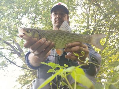 Rzeką płynie brązowa zupa, pewnie spuszczają Mietków. Woda bardzo podniesiona z ogromnym uciągiem....warunki iście poligonowe😡 Pomyślałem...nie ma sensu łowić w kawie bo i tak nic nie złowię, ale skoro byłem już nad wodą, to jak tu jechać z powrotem do domu. Trochę pochodziłem za rybkami, żeby zlokalizować ich obecność w takich warunkach....udało się i efekty były, nie jakieś powalające, ale w takich warunkach każda rybka cieszy. Sporo niezaciętych brań, ale kilka udało się wyjąć...kleniki 25-35, no i jeden pan bolek.