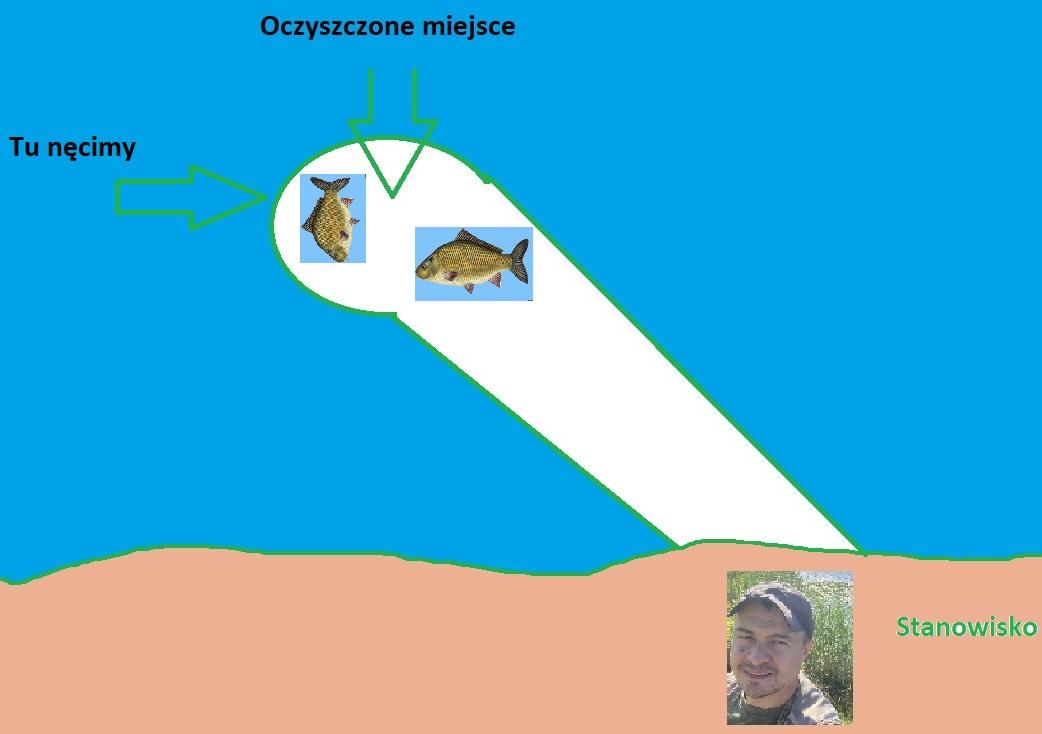 Szybki przepis na sukces. Trochę rozwinę to co napisał Tomek, bo mnie trochę uprzedził. 1. Obserwacja wody. Może są miejsca na tej wodzie, które ryby upodobały sobie bardziej niż inne. 2. Wybierz miejscówkę. Koniecznie trudniej dostępną. Nieobleganą. Główna zasada – im dalej od samochodu, tym mniej ludzi. 3. Oczyść ją z roślinności (o której piszesz). Są takie kotwiczki z linkami (można kupić na temu za małe pieniądze) – patrz zdjęcie. Czyścisz po skosie. Nawet jak Cię ktoś podejrzy to 90% ludzi rzuca zestawy na wprost. Na wprost będzie zielsko, co powinno zniechęcać potencjalnych „podsiadaczy” – patrz zdjęcie 4. Nęcenie. Pęczak – tani, najprostszy w przygotowaniu, tani, ryby go znają, wydajny i tani Makaron kolanka – sypiesz mniej, wydajny, tani – jego kształt powoduje, że nie zjedzą go mniejsze rybki. Nęć regularnie. Nie musi być tego dużo. Grunt, żeby przyzwyczaić ryby. Masz wodę blisko domu – idź w nocy na szybki spacer i zanęć. W dniu łowienia mała garść pęczaku i jeszcze mniejsza makaronu – tak, żeby pokazać rybom, że już jesteś. Łowisz na przemian na makaron i pęczak. Z robactwa typu pinka/biały bym zrezygnował bo odławiając małą wzdręgę przepłoszysz wszystko inne. Efekt murowany. Spróbuj a nie pożałujesz. Podziel się koniecznie efektami. Połamania!