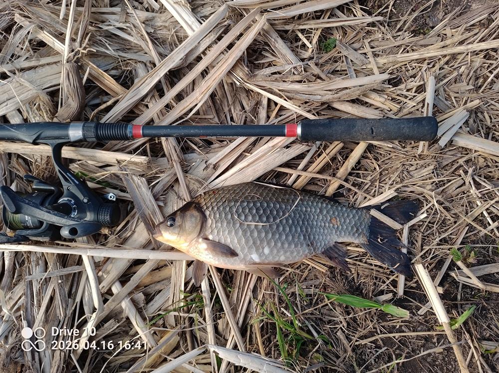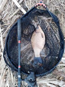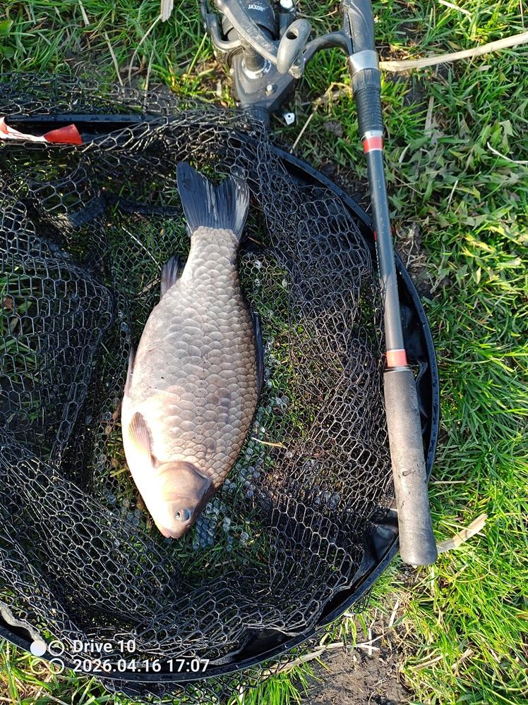 Wczoraj w końcu udało się posiedzieć kilka godzin z pickerkiem. Łowiłem od 12.30 do 19.30 Wybrałem się na staw PZW w Trzcianie ten mniejszy. Nie łowiłem na nim jeszcze nigdy. Do tej pory był w rejestrze wód PZW ale woda praktycznie niewędkarska. Dla wędkarzy dostępny jest tylko jeden brzeg, który miał około 10 metrowy pas trzcin, bez żadnej luki więc nie było gdzie usiąść. Dopiero w tym roku po zimie zrobiono trochę miejsc dla wędkarzy. Pomyślałem że skoro nikt tam nie łowił przez wcześniejsze lata to ryba powinna być fajna. Najbardziej nastawiłem się na karasia i lina, że na wiosnę to powinny już się ruszyć. Lina co prawda nie było ale karaś na 53 cm 100% wynagrodził oczekiwania W sumie złowiłem 4 karasie, 32,33,33,53 cm , z 10 płotek w tym takie ponad 20 cm ale coś mi się ubzdurało że do GP płotka to co najmniej 25 ma mieć i nie robiłem fotek. 6 karpików takich koło 30 cm i jedna ryba duża zerwana z haczykiem. Łowiłem tak z 15-18 metrów od brzegu, na granicy zasięgu strzału z procy peletem 4mm. W sumie ze 2 garście poszły do wody przez te godziny łowienia plus zanęta w koszyczku. Na haczyk szły 3-4 białe robaki. Brań miałem bardzo dużo, ale okresowo wiał za mocny wiatr, robiła się taka krótka agresywna falka i w tym czasie szczytówka ciągle podskakiwała co mocno zaburzało reakcję na brania. Zbieg okoliczności niekorzystny, że akurat wiało od tej strony i fala waliła w żyłkę. Jak się wiatr wyciszał i nie było fali to brania były super widoczne. Woda ma potencjał i trzeba będzie tam częściej jeździć