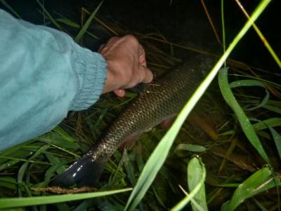 Nocne łowienie sandaczy na słuch. Od jakiegoś czasu nie mam szczęścia do ryb. Nie narzekam na brak brań, ale na ilość przegranych. Analizowałem, co jest nie tak i jedynie mogłem zmienić wędkę na dłuższą. Krótsze mają wiele zalet i od kilku sezonów nie wyobrażałem sobie łowienia z dłuższą niż 240 cm. Miarka się przelała. Podczas holu tracę zbyt dużo ryb. Trzeba sięgnąć po sprawdzonego travela. Wędka z maksymalnym cw do 30g/270 cm. Wspominam ją z sentymentem, bo wyszedłem do sklepu po chleb, a wróciłem z wędką. W tym czasie zauroczyłem się spinningowymi travelami i gdy „całkiem przypadkiem” zahaczyłem o sklep wędkarski, zobaczyłem fajny budżetowy kij w tej wersji. Wziąłem do ręki, fajny, nie jest pałowaty, mógłby nawet dużą brombę obsłużyć. Jeszcze nie wiedziałem, ile kosztuje. Patrzę na metkę i po chwili stoję przy kasie;) Podchodzę na brzeg Odry. Woda od kilku dni wysoka i mocno ciągnie. Wziąłem muchówkę, bo miałem nadzieję, że da się komfortowo połowić. Jeszcze poleży i poczeka na lepsze czasy. Tej nocy będzie nocne spinningowanie na słuch. Postanawiam trochę pochodzić za sandaczami, które robią trochę hałasu i będą możliwe do zlokalizowania. Drobne rybki chowają się w trawach na spowolnieniach nurtu. Trzeba będzie łowić z dłuższego przytrzymania. Nie przypada mi do gustu ta opcja, ale w napotkanych warunkach nie daję szansy na inne łowienie. Do tego doskonale będą się nadawały woblery HMS Panic”Z” - Spinnerman. Wybieram pływającą dziewiątkę. Bardzo lubię łowić na mniejsze wersje z tej serii (8-9 cm). Kiedyś przeglądałem internetowe otchłanie i na YT trafiłem na film z prezentacją woblerów pod sandacze. Wiedziałem, że muszę je mieć. Po czasie stałem się właścicielem kilkunastu woblerów i nimi staram się czarować ryby. Cały zestaw wygląda tak: spinning Jaxon Eternum travel 10-30/270, kołowrotek Shimano Sahara 4000, plecionka 0,14 mm, przypon stalowy ok. 10kg i pływający wobler 9 cm HMS Panic”Z”. Wodery po ostatnim zalaniu wyschły, to będę miał jak dotrzeć do trudniejszych miejsc. Ostatnio sporo musiałem pomijać i było więcej chodzenia. Jest pierwsze obiecujące miejsce. Drobnica w panice ciągle wyskakuje z wody. Zatrzymuję się i powoli, bardzo wolno podchodzę do miejsca. Woda sięga do kolan, więcej nie potrzebuję wchodzić. Jeden krok więcej i będzie po pas. Dłuższa wędka daje możliwość prowadzenia przynęty przy trawach. W zasadzie to opuszczam woblera na wodę, odmykam mechanizm wstecznego kręcenia i pozwalam woblerowi pływać w nurcie na „wstecznym”, czyli bardzo wolno kręcę korbką wstecz, by wobler myszkował wzdłuż przybrzeżnych traw. Długo nie czekałem i następuje spore trzepnięcie. Jeszcze nie zdążyłem wczuć się w atmosferę a tu branie. Silniejszy nurt sprawia wrażenie, że mam coś większego. Kilka chwil i sandacz ślizgiem ląduje na brzegu. Po ostatnich porażkach bardzo mnie ucieszył. Przynajmniej nie dostałem prztyka w nos na samym początku. Będzie lżej w dalszym łowieniu. (51) Idę dalej. Kolejne miejsce i podobna sytuacja. Drobnica co chwilę jest przeganiana przez niewidzialnego drapieżnika. Wcześniej słyszałem tam charakterystyczne cmoknięcia. To mnie tam sprowadziło. Aby dojść do miejsca, te kilka metrów zajęły mi ponad minutę. Bardzo wolno podszedłem i ponownie położyłem wobler na wodzie. Nurt napierając na niego, ułatwia oddawanie linki. Wobler zaczął pracować w miejscu, gdzie rybki są ciągle niepokojone. Łup!!! Siedzi!!! Będzie większa sztuka. Po krótkiej walce drugi sandacz ląduje do galerii zdjęć. Piękna praca przynęty powoduje, że dziś sandacze wolą wybrać błyskotkę niż naturalną rybkę. Nie minęło piętnaście minut i mam niezłe emocje. (54) Warunki dla mnie nie są łatwe. Nie lubię takiej wody. Jednak trzeba się postarać coś z tego wycisnąć. Nigdy nie będzie idealnie, a jak już, to ryby będą nas miały głęboko w poważaniu. Dalej nadstawiam ucho. Coś niedaleko się chlapnęło. Dojrzałem miejsce i w spowolnionym tempie wciskam się w zalane trawy. Czuję, jak drobnica obija się o wodery. Mija kilka minut. Przeszukuję woblerem opaskę. Postanawiam podrzucić go trochę powyżej siebie, aby po skosie sprowadzić pod burtę w trawy. Wobler robi na wodzie „pac” i w tym samym momencie czuję porządne targnięcie. Przez chwilę hamulec się poddaje, ale mija moment i przejmuję inicjatywę. Tym razem woblera zgarnął ładny kleń. W nurcie dał pokaz siły. (45) Mija kolejna godzina. Wyciszyło się na wodzie. Widać niezliczone ilości rybek walczących z nurtem. Nic je nie niepokoi. Czas wracać. Dopada mnie zmęczenie i nie skupiam się nad tym, co robię. Po drodze łowię dwa małe sandacze w sprawdzonej miejscówce. Sto procent skuteczności, dawno tak u mnie nie było. PS